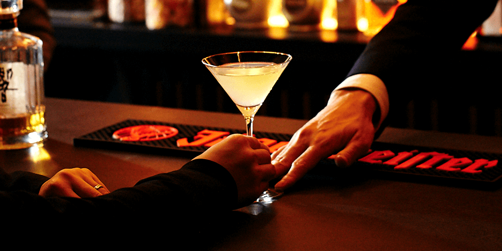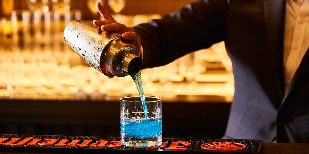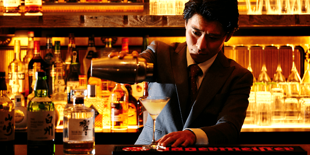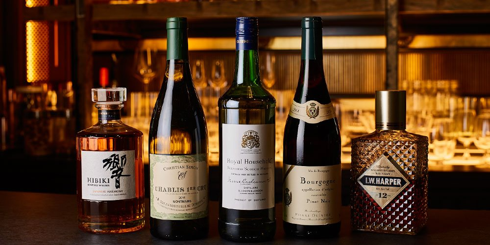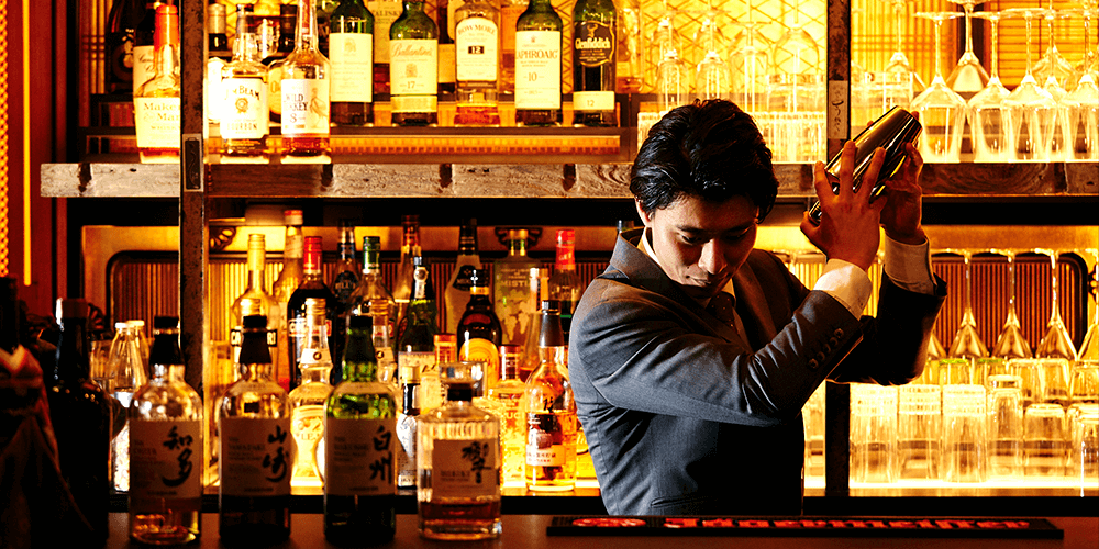 約100年前の欄間と金箔の酒棚を背景にした、金色に輝くバーカウンター。街中の喧噪から離れ、のんびり旅の余韻を味わいながら、思い思いの祇園の夜をお愉しみください。