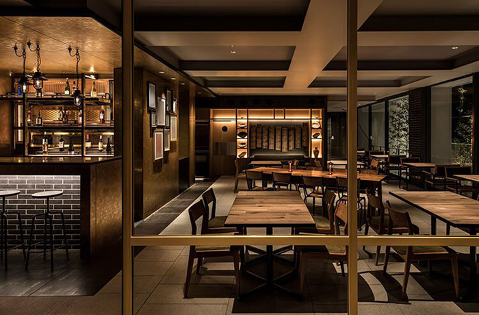 半地下とは思えない柔らかな朝の光に包まれるレストラン「TAKEDOKORO 竹処」。中庭の情緒あふれる景観とともにお食事をお愉しみいただけます。ラウンジやバーと緩やかにつながるカジュアルな空間で、それぞれの寛ぎの時間をお過ごしください。