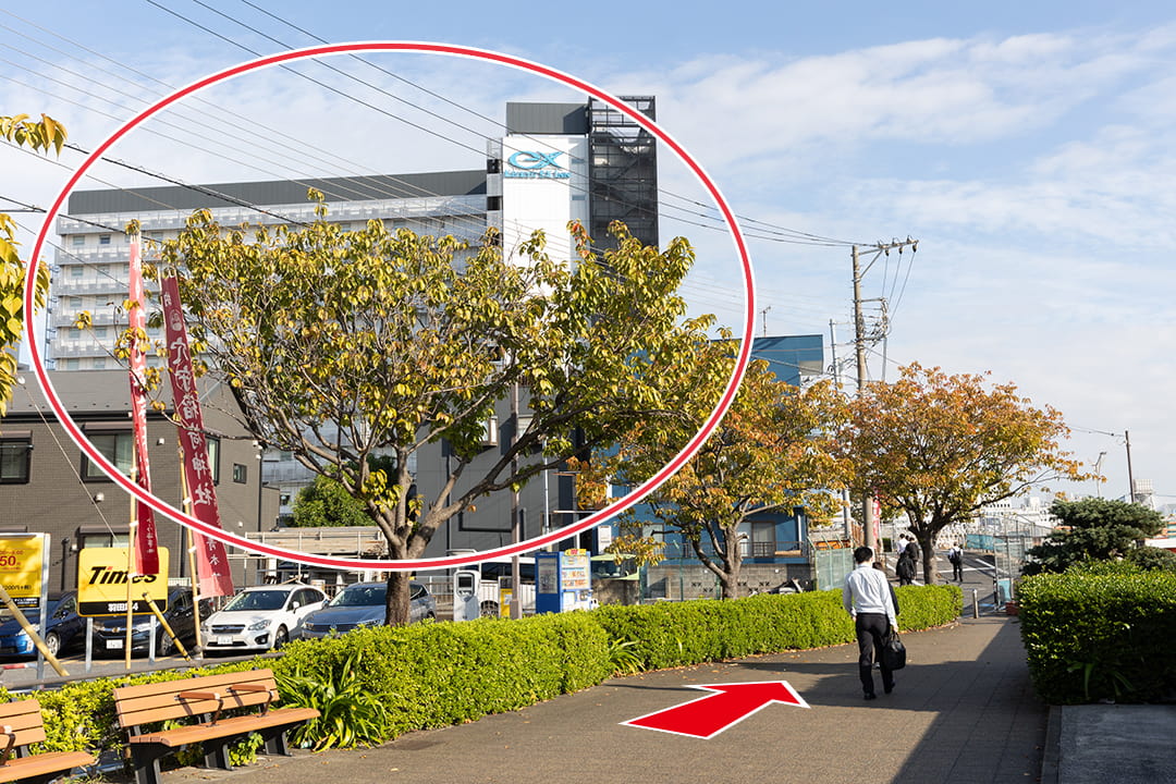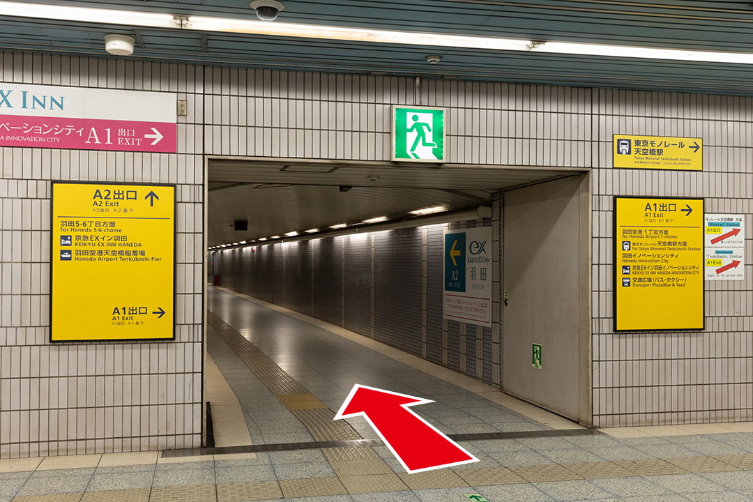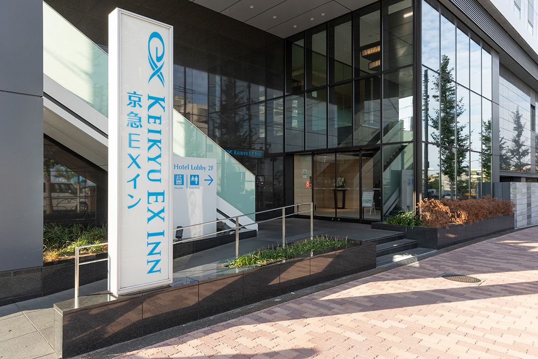 当館は、天空橋駅のA1出口・北口・A2出口から見える KEIKYU EX INN の看板が目印の建物です。