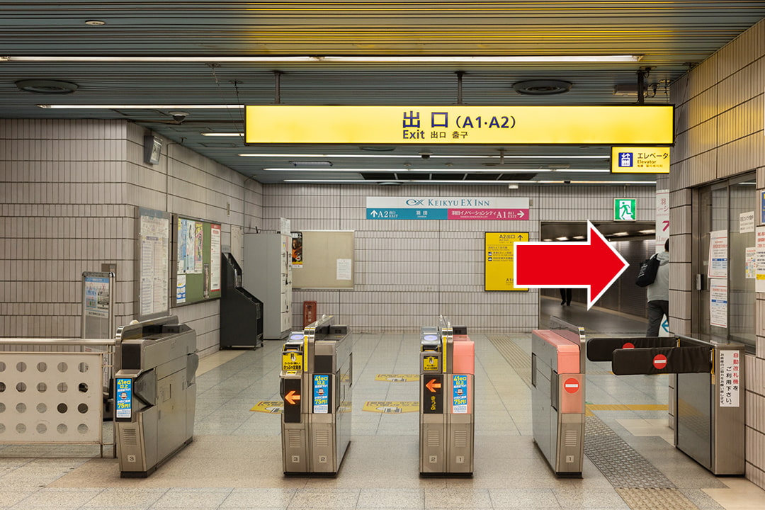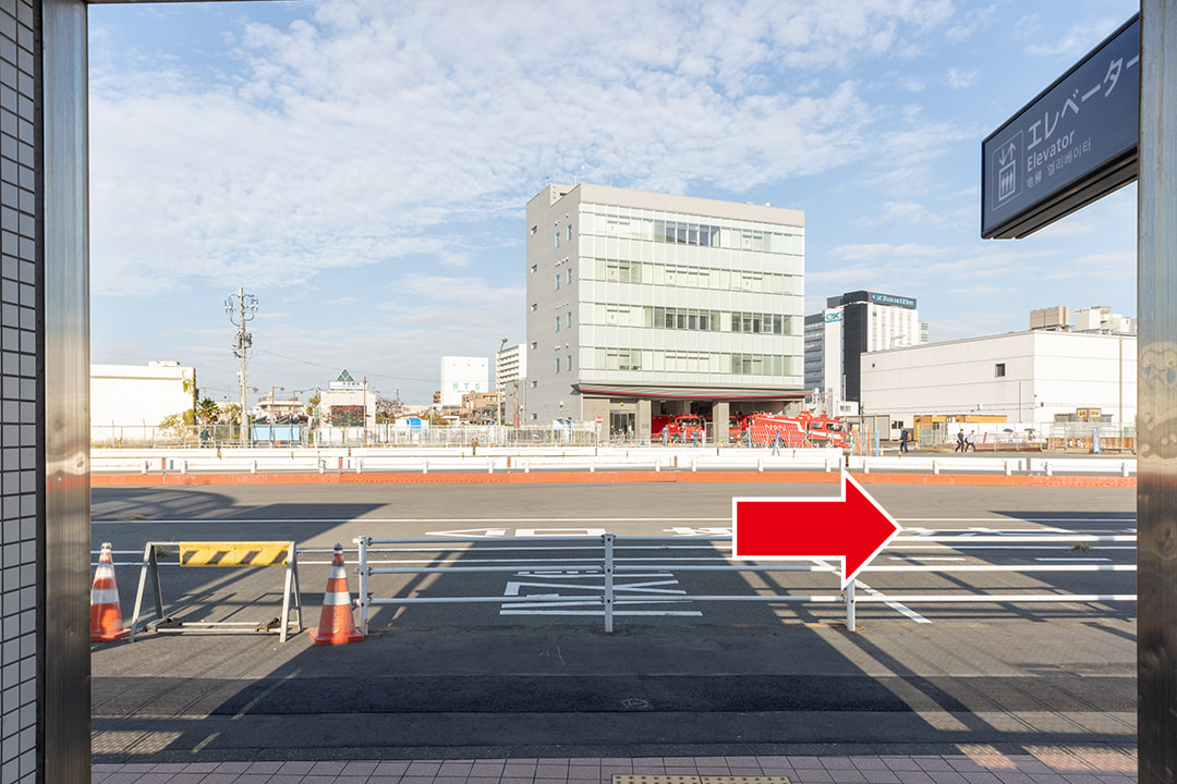改札口を出たら右に進んでください。