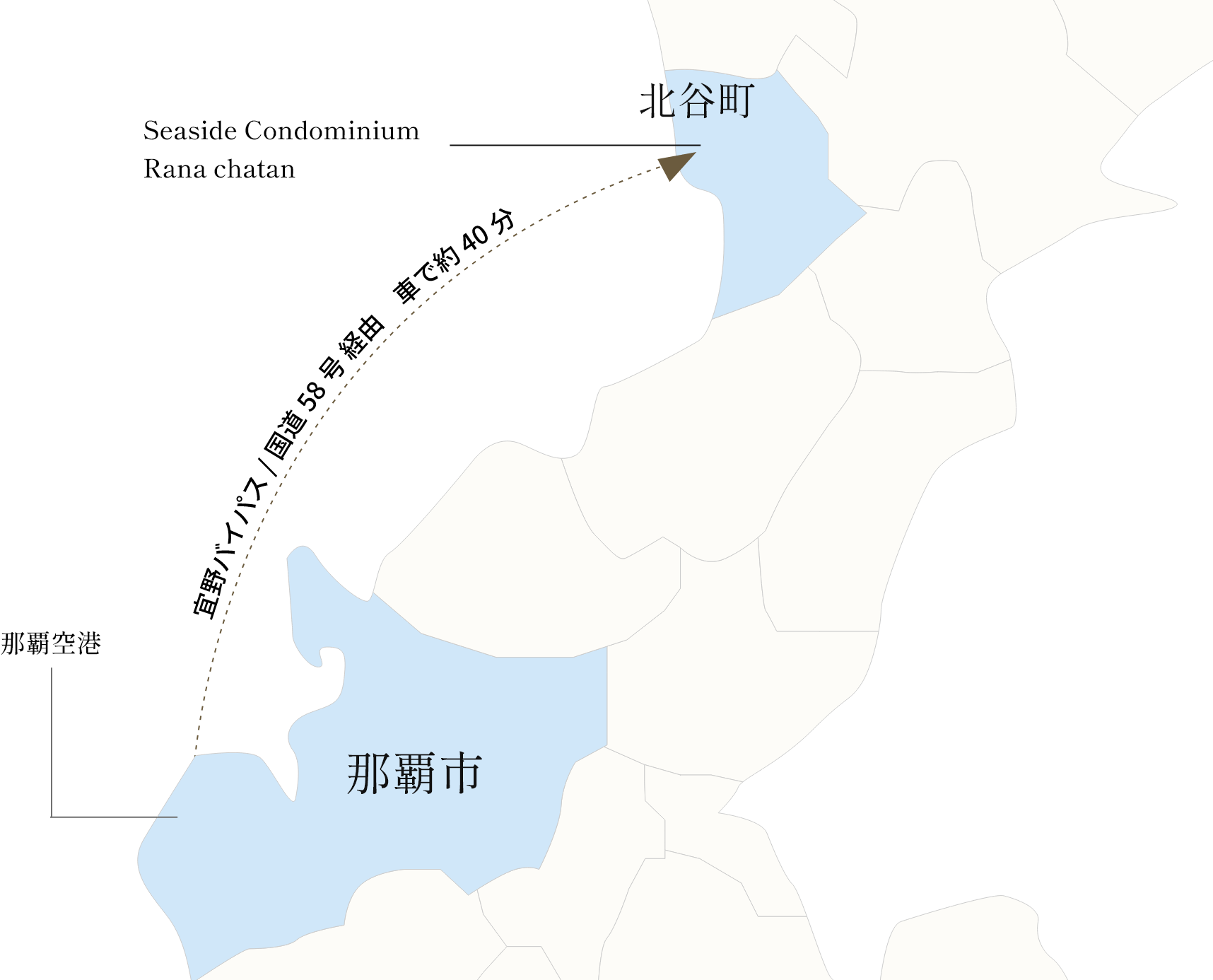 那覇空港よりお車にて約45分~1時間半(混み具合による)