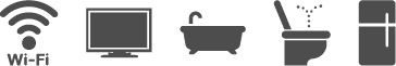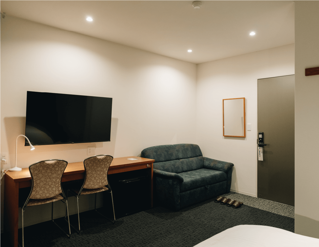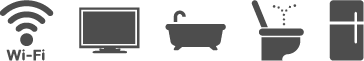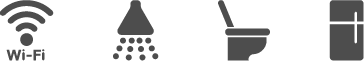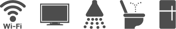 テレビ、電話、ファックス(貸出)、Wi-Fi、ティーサーバー、湯沸かしポット、お茶セット、冷蔵庫(一部)、ドライヤー、ズボンプレッサー(貸出)、アイロン(貸出)、エアコン、ウォシュレット