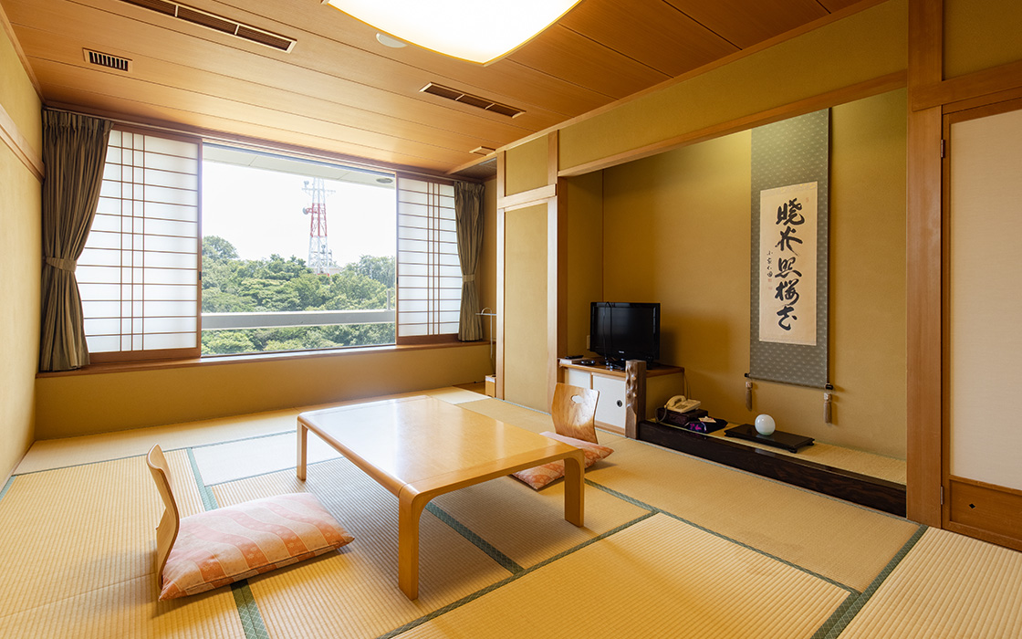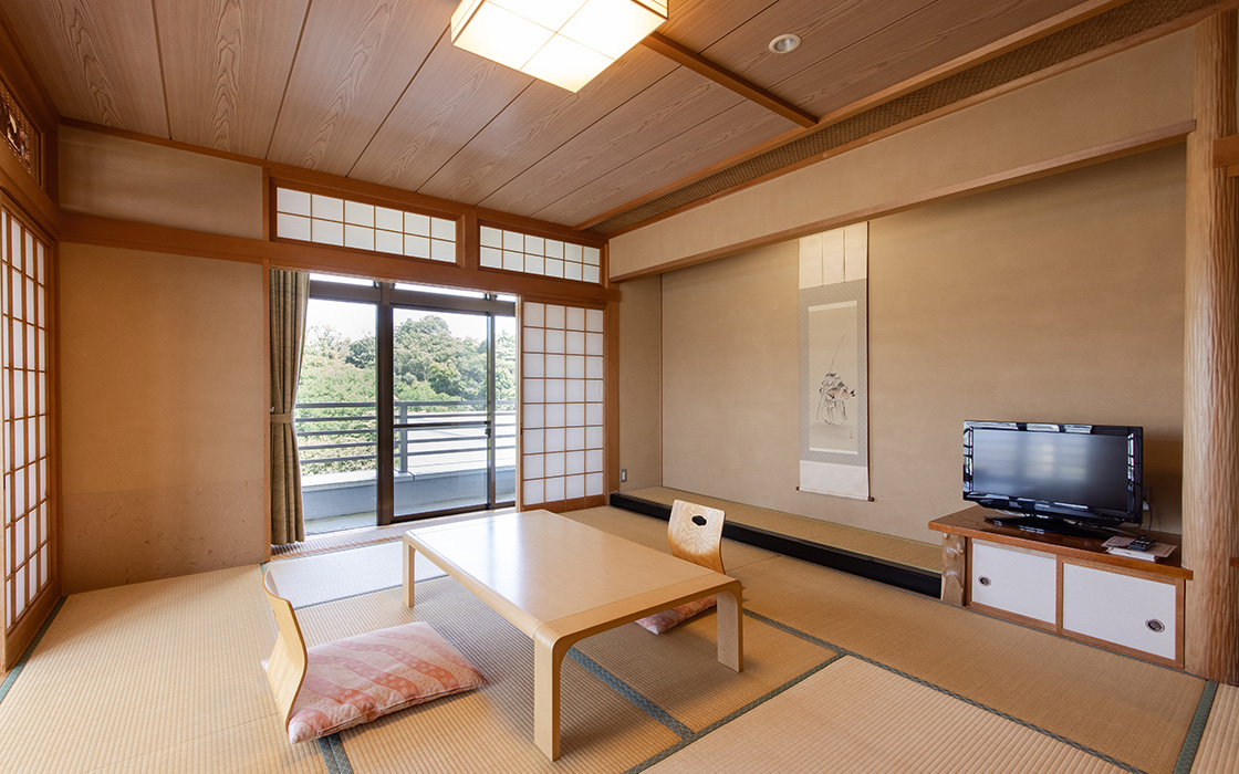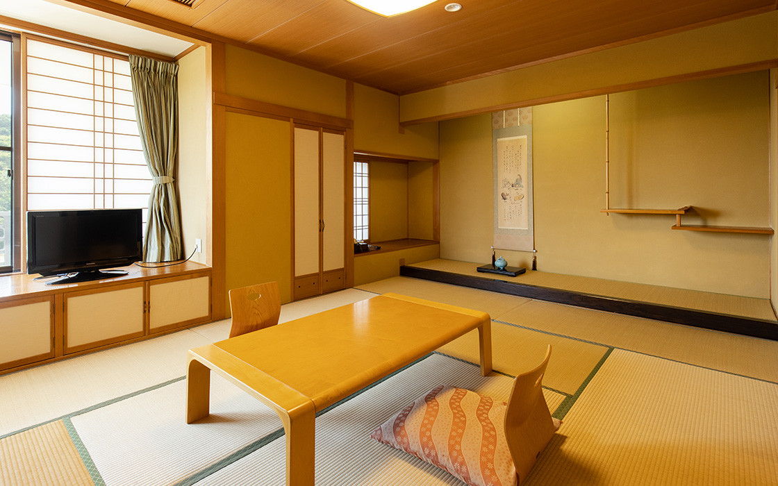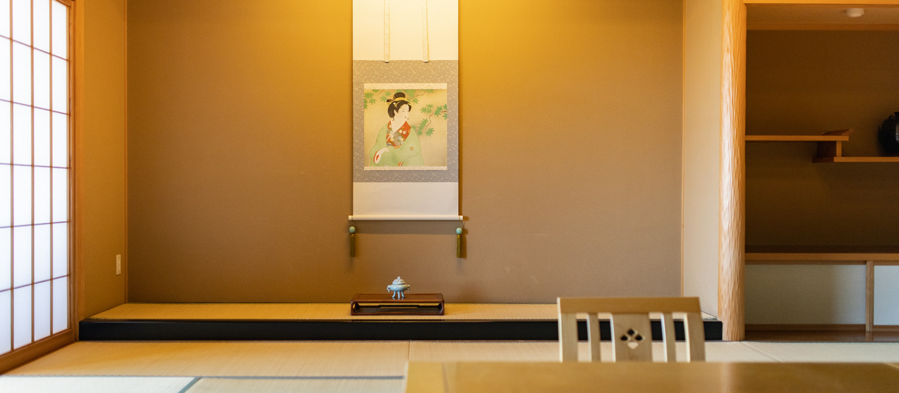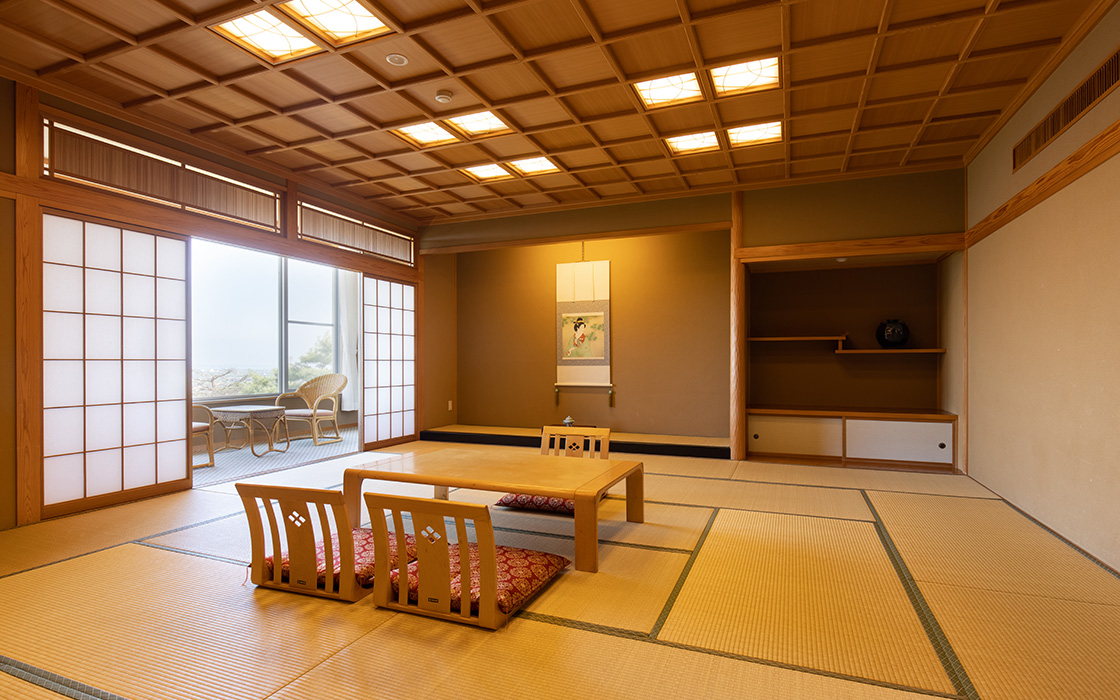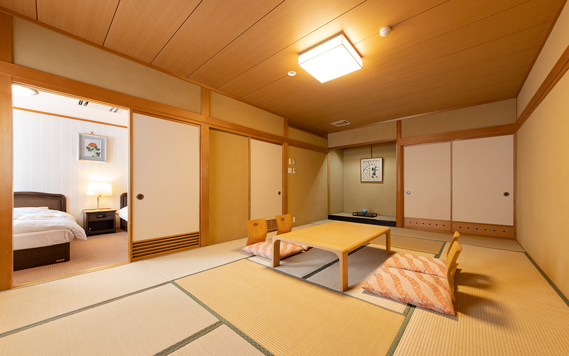 全37室の客室は、 純和風づくりの落ち着いた雰囲気。 それぞれ趣の異なる空間が、 日常から非日常へと誘います。 人数やシーンにあわせたお部屋で、 和やかな語らいのひとときをお楽しみください。