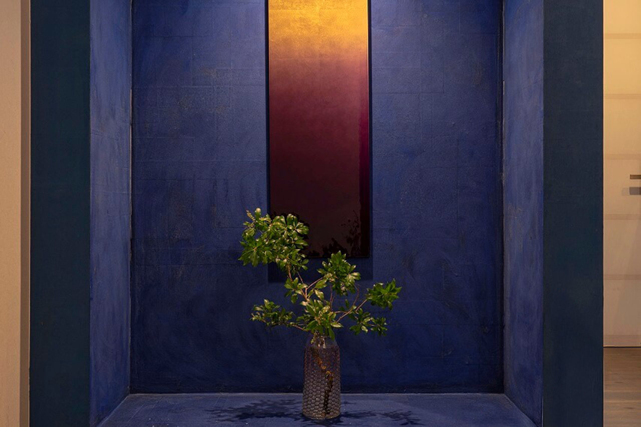 夜明けのような濃藍と金の色が散りばめられた町家宿。