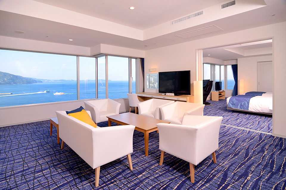 客室 それぞれの語らいに…。 満ちたりたひとときをお届けします。 オーシャンビューで夜景を一望できる客室の他、1名様でもご利用頂ける客室をご用意しております。 AQUA SQUARE(4〜8F) オーシャンビュールーム コートヤードルーム 詳細をみる タワー館エクセレンシィフロア(15〜17F) エクセレンシィルーム(和洋室) エクセレンシィラージルーム(和洋室) エクセレンシィラージルーム(洋室) 詳細をみる タワー館スタンダードフロア(6〜14F) 和室 洋室 ユニバーサルルーム 詳細をみる
