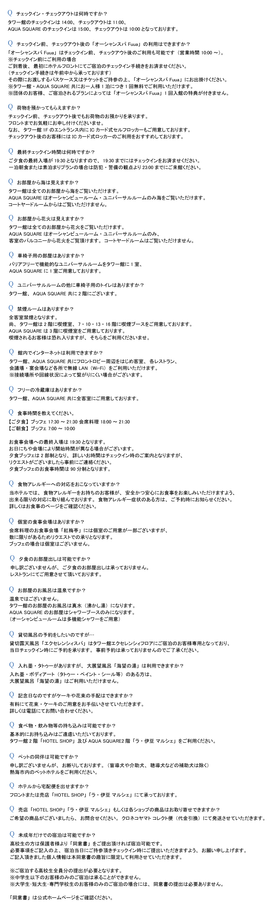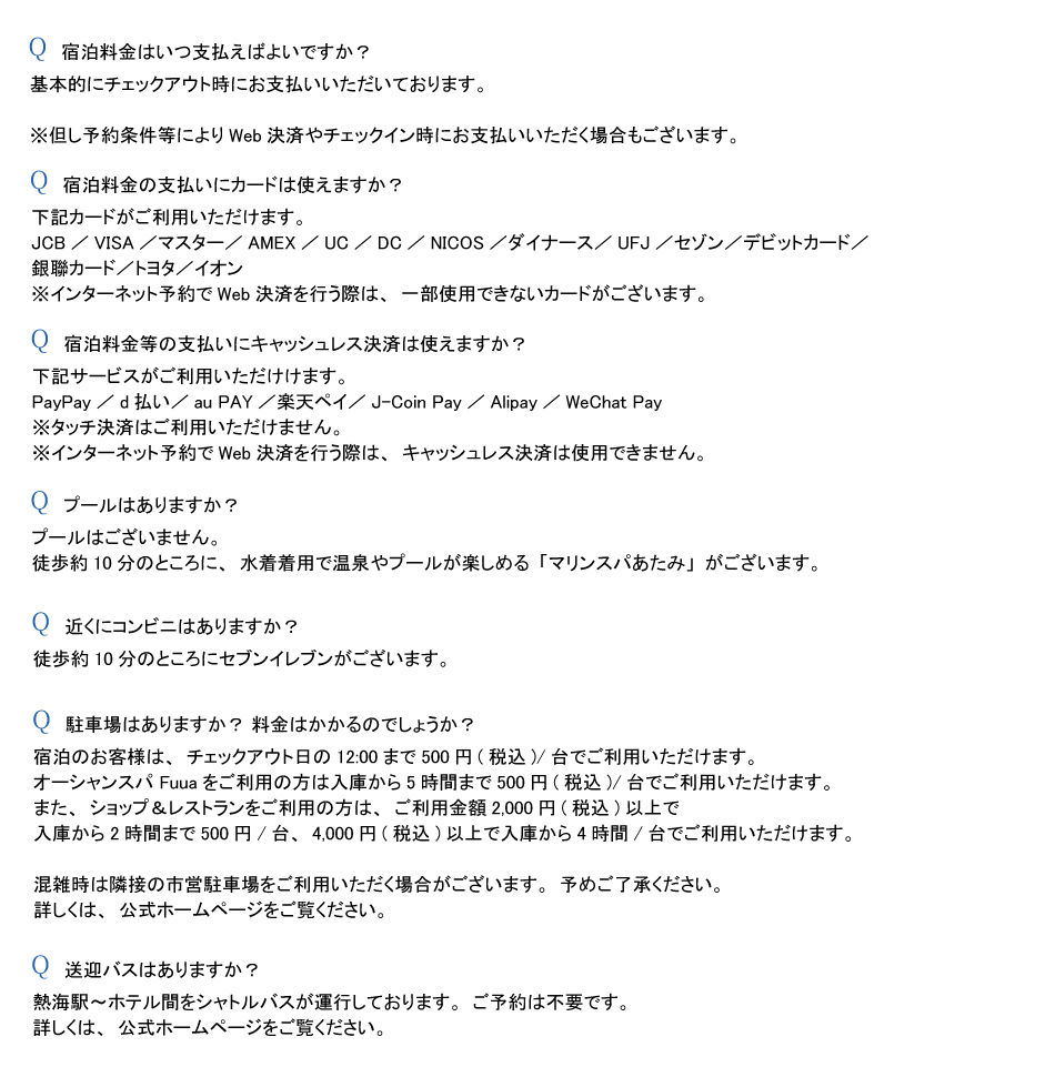 熱海温泉 熱海後楽園ホテル よくある質問