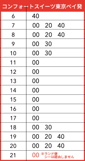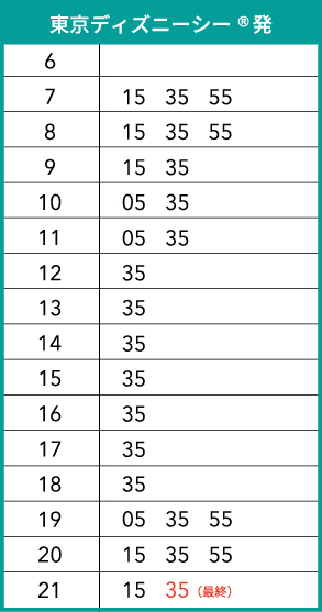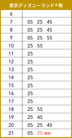 ※パーク19時閉園時はバスの最終時刻も19時台となりますのでご注意下さい。