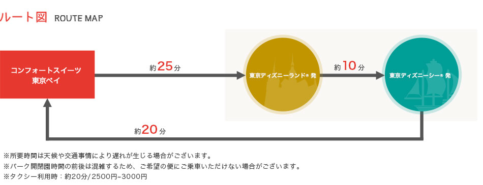 ※東京ディズニーリゾートの営業時間変更に伴い、東京ディズニーリゾート間シャトルバスの最終便出発時刻を変更いたします。