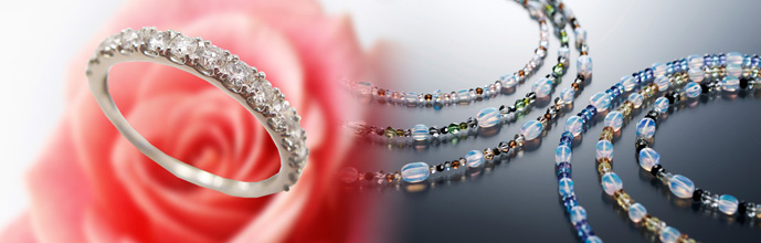 | クレサンベールは、京セラが開発した人工宝石を使った宝飾ブランドです。 ダイヤやゴールドを組み合わせ独自のブランドを展開しています。 |