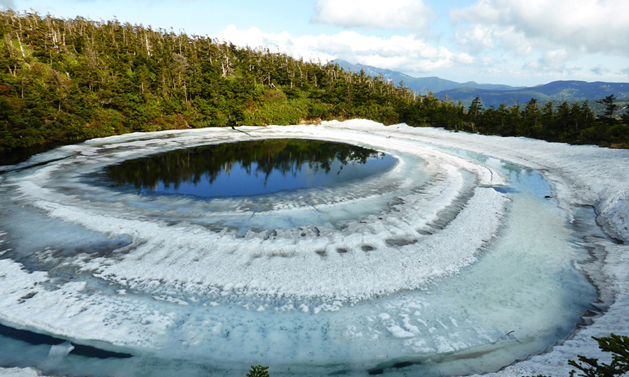 5月の下旬から6月の上旬にかけての限られた時期、八幡平頂上付近にある鏡沼の雪解けの様子が、まるで竜の目の様に見えることから「八幡平ドラゴンアイ」と呼ばれています。