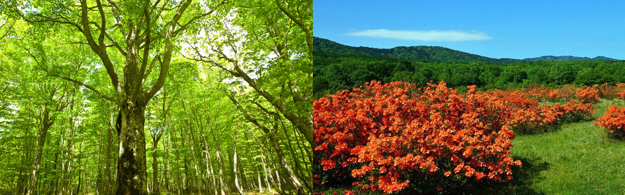 爽やかな空気に包まれた緑眩しいブナの林が広がります。