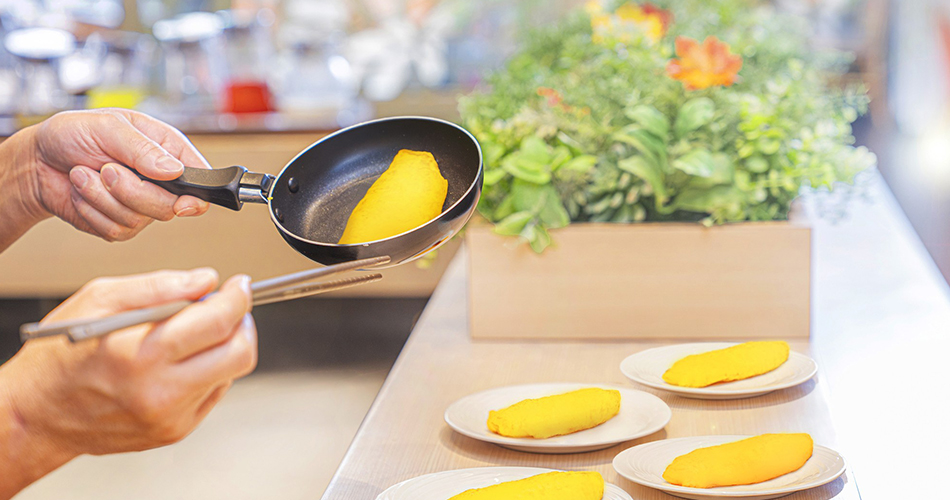 たまご料理は、お客様からオーダーをいただいてから焼き上げるライブキッチンで、ご用意しております!