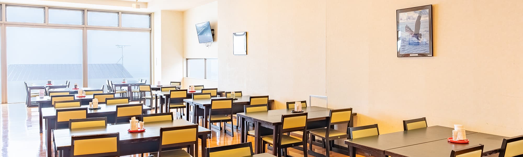 海に面しておりますので、国後島の景色を眺めながらお食事を楽しめます。