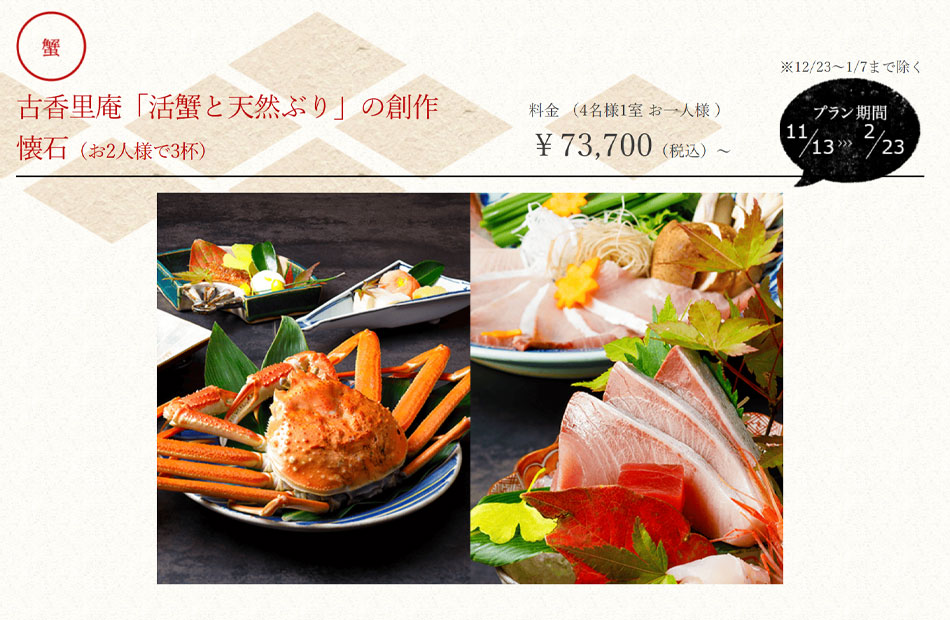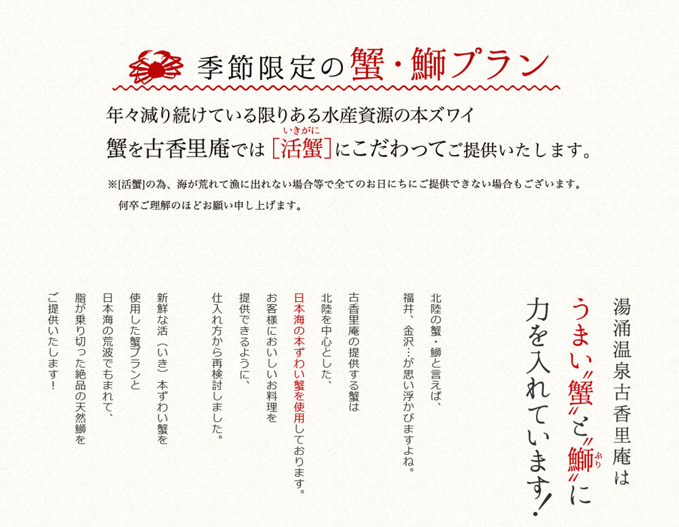 金沢湯涌温泉 古香里庵 蟹&鰤