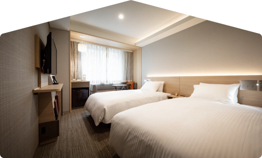 全室角部屋です。広々としたデスク・デスクライトが備わり、ビジネスユースにおすすめです。