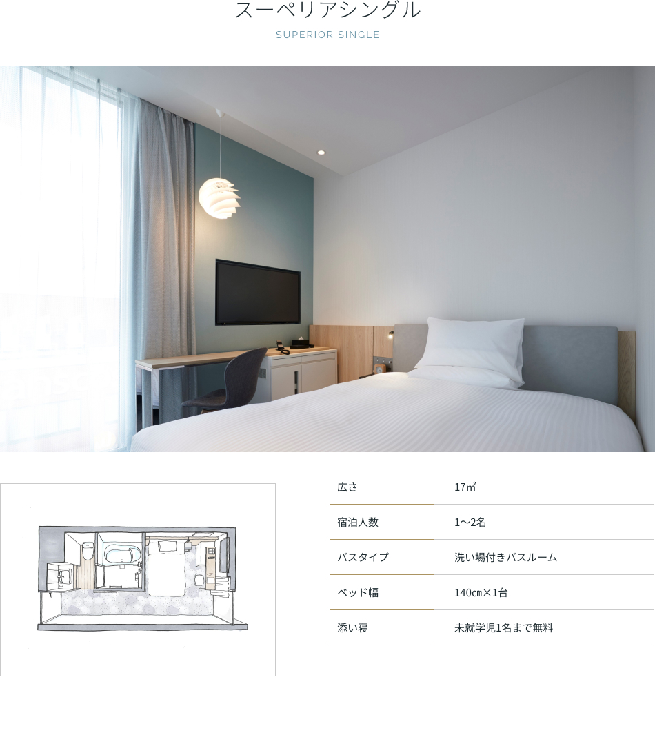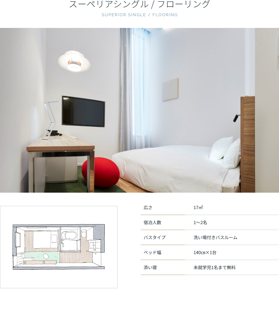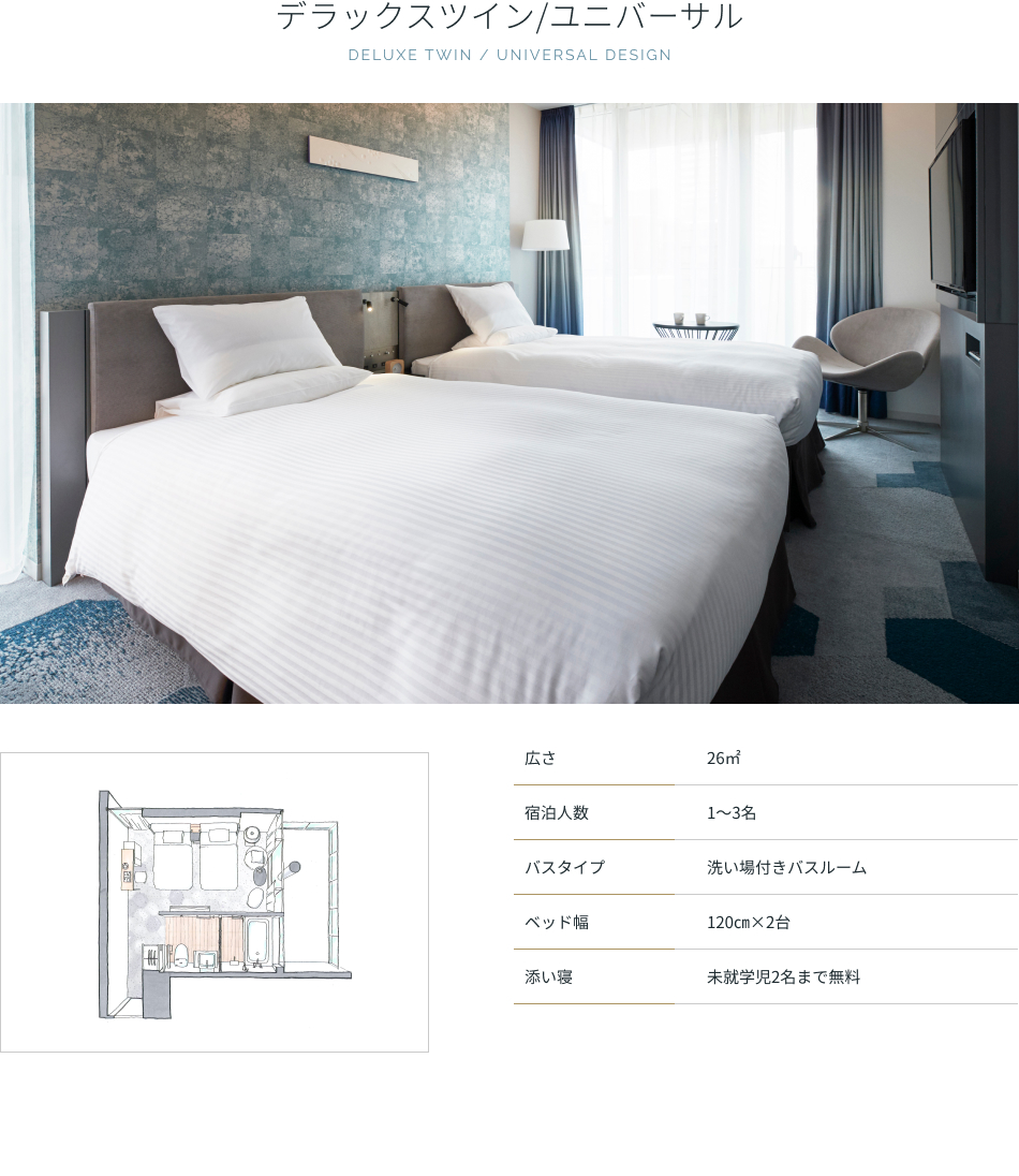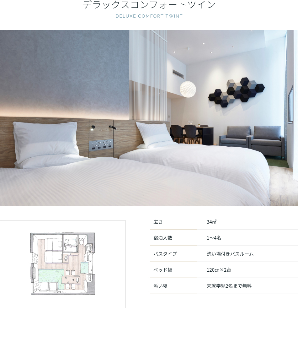 | アメニティ | バスタオル、フェイスタオル、ナイトウェア(セパレート)、スリッパ、シャンプー、ヘアコンディショナー、ボディソープ |