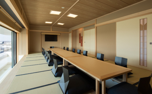 富士山をバックに雄大な自動車工場を見渡せる宴会場をご用意しております。掘りごたつ式なので楽に宴会をお楽しみいただけます。宿泊利用者様に限り8〜14名様より承っております。ご予約は利用日の2週間前までにお申し込みください。