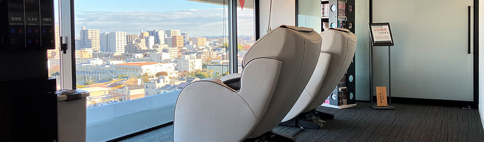 お風呂上りにはリラクゼーションルームでゆっくりとしてはいかがでしょう。ドリンクディスペンサー、マッサージチェアー、漫画などすべて無料でご利用いただけます。