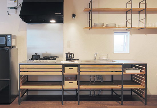 キッチンは暖かさのある木目調を基調にした、スタイリッシュなタイプに。