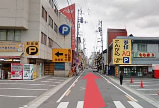 ① JR琴平駅出口正面の道を直進します。