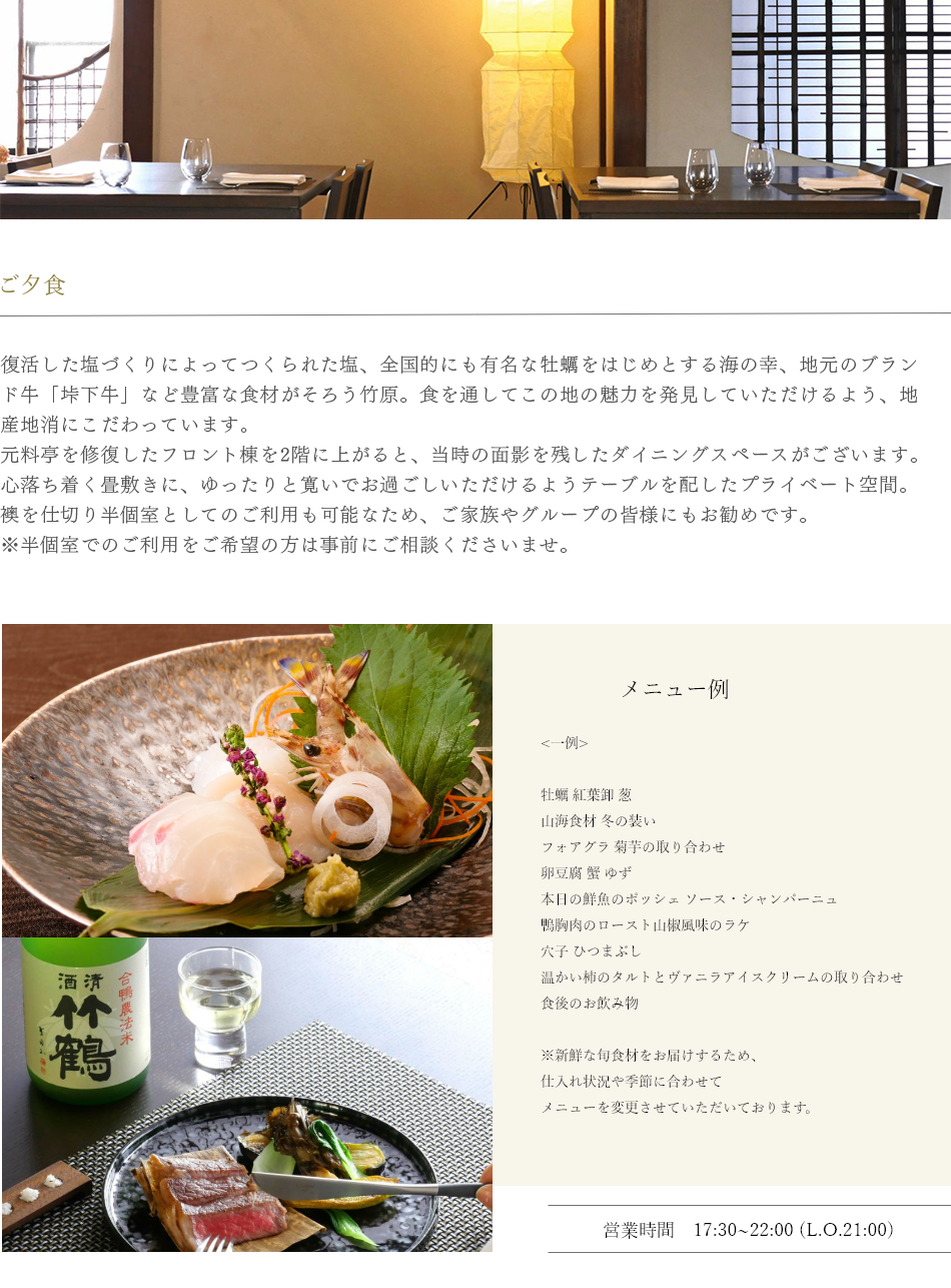 NIPPONIA HOTEL 竹原 製塩町 お食事