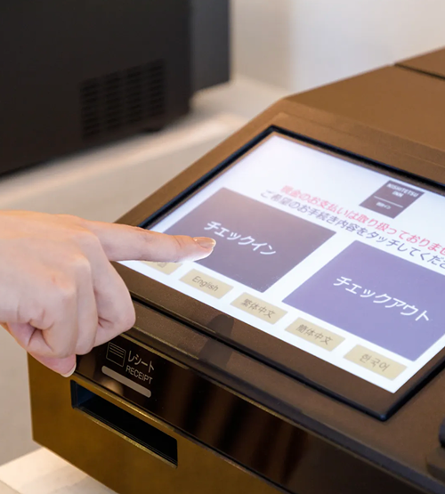 自動チェックイン機を4台ご用意しております。簡単タッチパネルでスピーディーにいつでもチェックイン・チェックアウトが可能です!