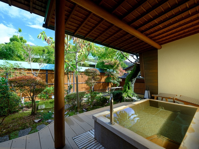 季節ごとの移ろいを見せる庭園や客室に付いている温泉で寛ぎのお時間を。