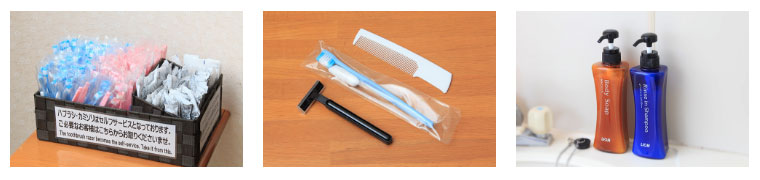 バスタオル・フェイスタオル・ボディーシャンプー・リンスインシャンプー・お部屋着・スリッパ・ドライヤーなどをご用意しております。