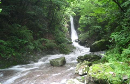 杣の里渓流公園から約15分歩いた所にある滝。樹齢数百年の自然林に囲まれた県下最高峰の山々である釈迦ヶ岳・御前岳にあります。