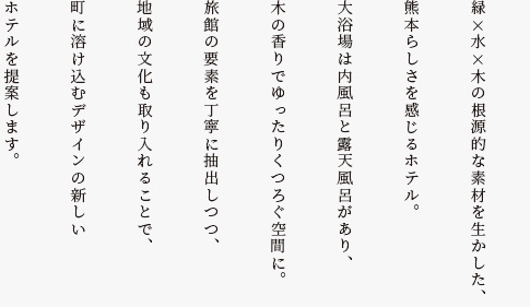 『木の香りでゆったりくつろぐお風呂』をコンセプトに、素材を生かした温かみのある雰囲気の中でおくつろぎください。