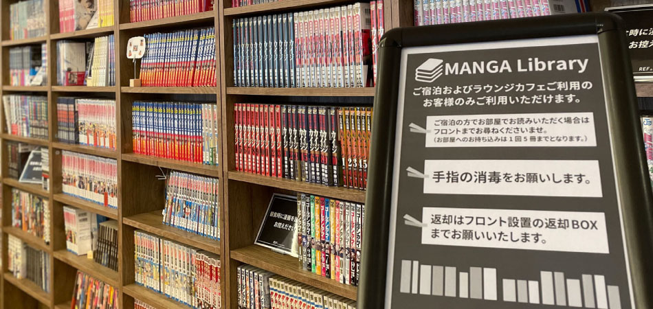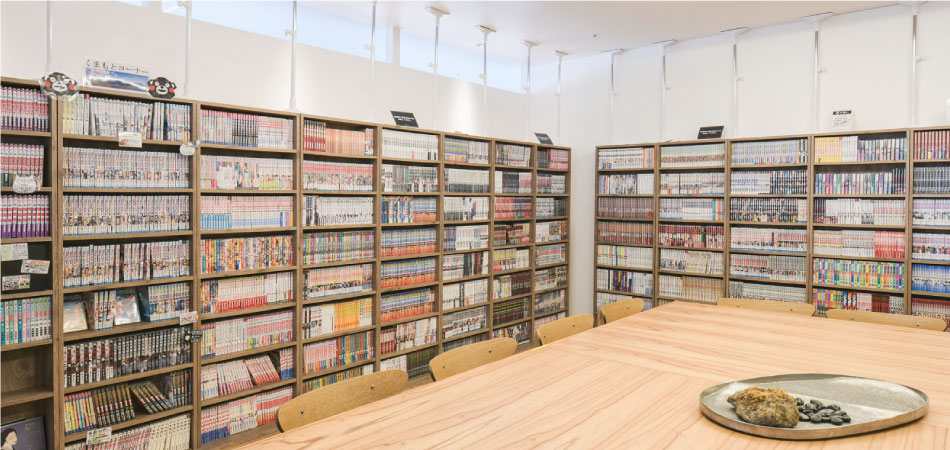 ラウンジ内に開設しているレフ熊本 MANGA Library。