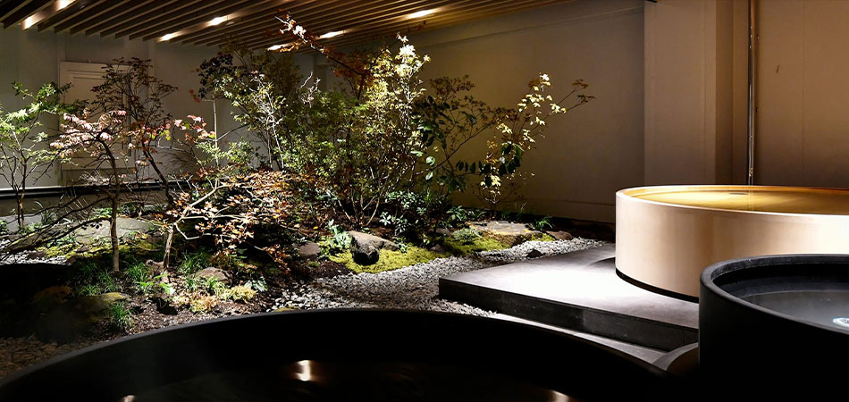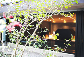 阿蘇石の岩盤やその隙間に育ったヤブツバキやツツジ類、モミジなどの樹木や足元に根付いたシダや苔などを通して、自然の爽やかな香りや風の涼しさ、生命の輝きを感じてゆったりとくつろいでもらいたいと思っております。