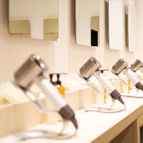 清潔で広々とした洗面所付きの脱衣所がございます。ダイソンのヘアドライヤーを設置しております。