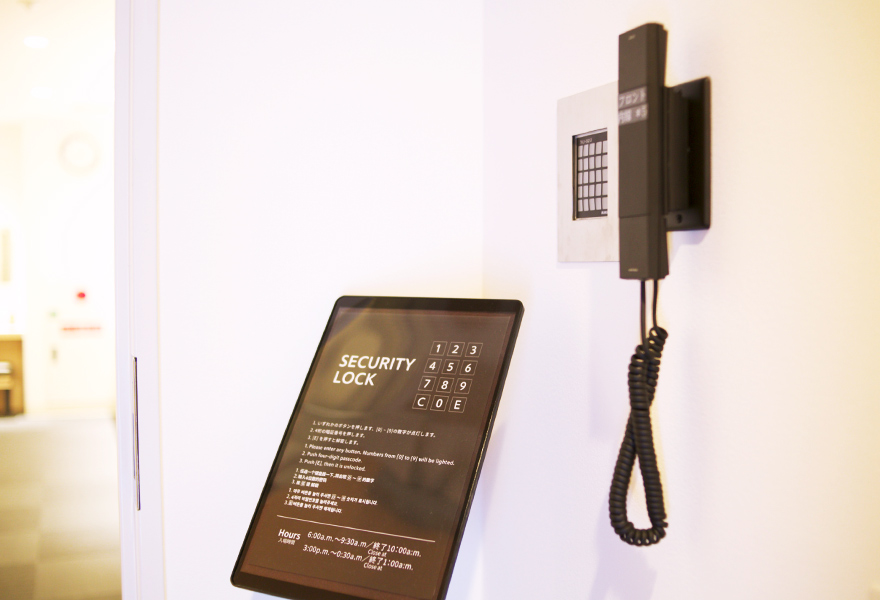 安心してご入浴いただけるように、脱衣所の前にセキュリティシステムを設置しています。 ※女性専用