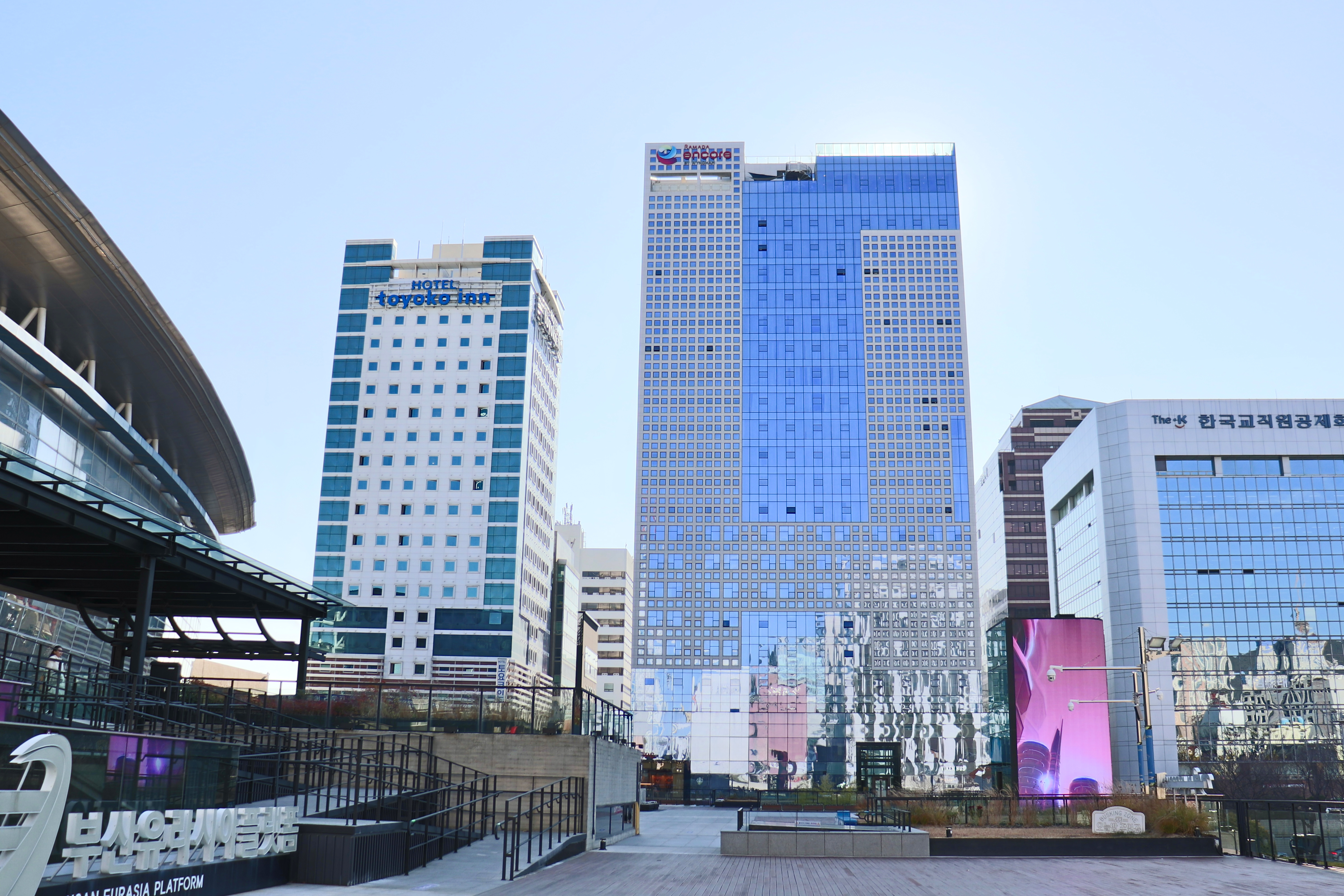 金海空港から車で約30分。地下鉄1号線「釜山」駅の6番出口より徒歩約1分。KTX釜山駅から徒歩約1分。