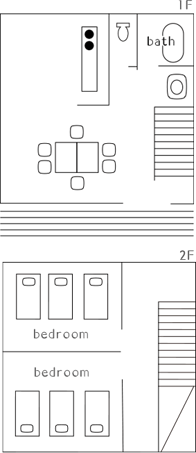 間取り / LDK+2階に寝室が2部屋(トリプルルームが2部屋)
