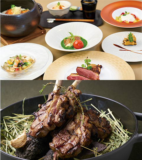 海の幸や山の幸をダイナミックに目の前でライブ調理和とフレンチの技法を駆使し、溶岩石の熱で仕上げるここだけの食体験をお楽しみください