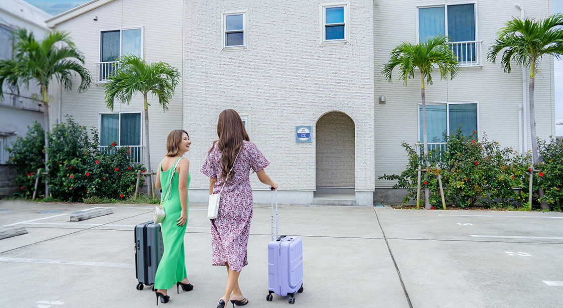 ビーチまで車で5分!キッチン、洗濯機、乾燥機付きで快適ステイ◎送迎&提携レンタカー会社の割引有!