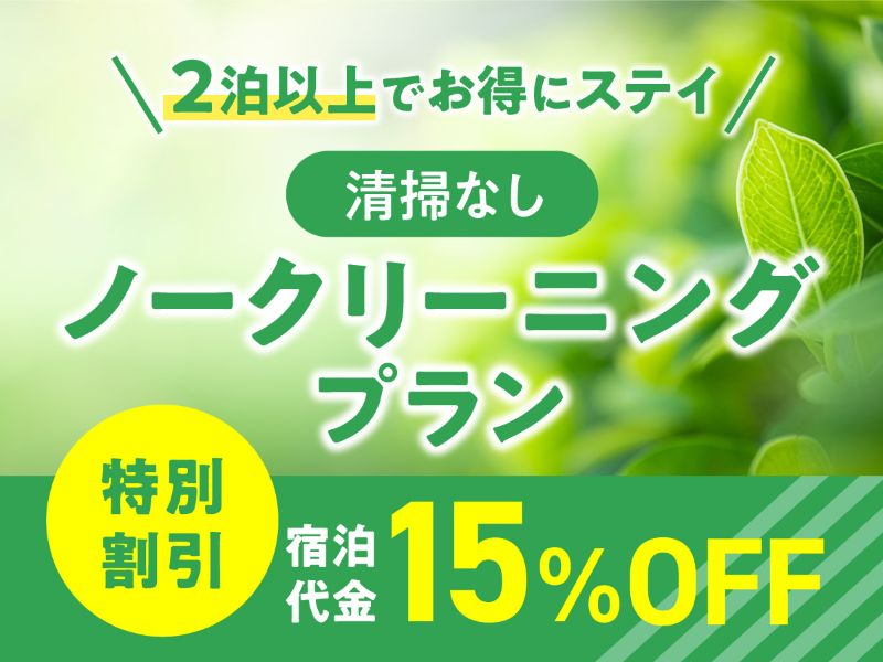 エコにご協力いただけた方のみへの15%OFFの特別割引★連泊プランノークリーニングプラン