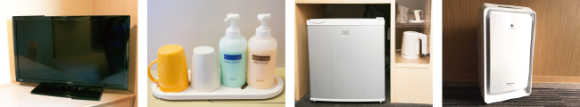 全客室に空気清浄機を完備しています。加湿機能付きですので、乾燥が気になる方も安心です。