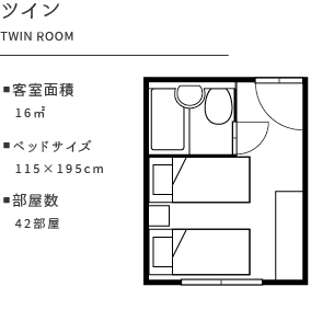 | バスタイプ | ユニットバス・洗浄機能付きトイレ 全室完備 (デラックスツインルームは洗面所別) |