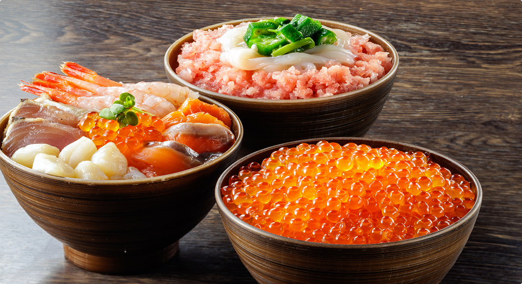 セルフスタイルで楽しめる海鮮丼が主役。