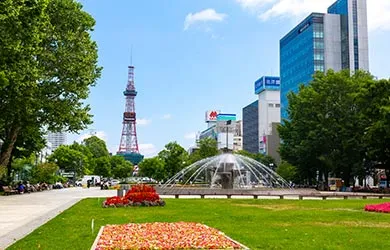 さっぽろ雪まつりの会場としても有名な大通公園。東西に広がり、ホテルから一番近いところでは徒歩約10分で到着。さっぽろテレビ塔や、夏の風物詩「とうきびワゴン」でとうきびを買って食べながら旅の計画を立ててみては?