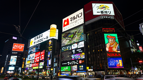 活気あふれる繁華街で、本場のジンギスカンとビールで乾杯。