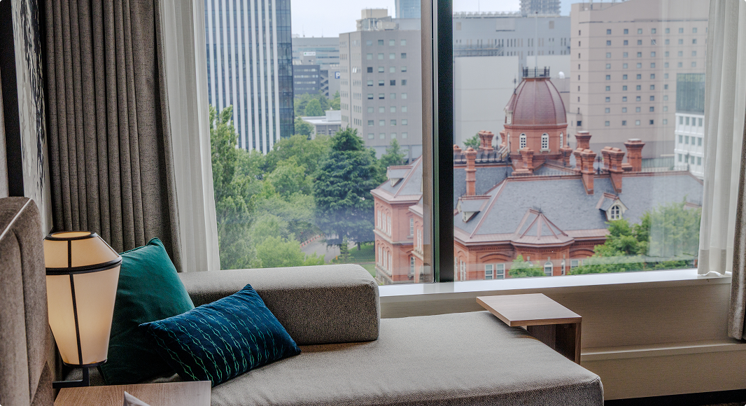 JR札幌駅から徒歩5分のホテルへ荷物を預け、まずは「北海道庁旧本庁舎(赤れんが庁舎)」へ。明治時代に作られた味わい深いひずみのある吹きガラスなど、まるでタイムスリップしたような感覚に。