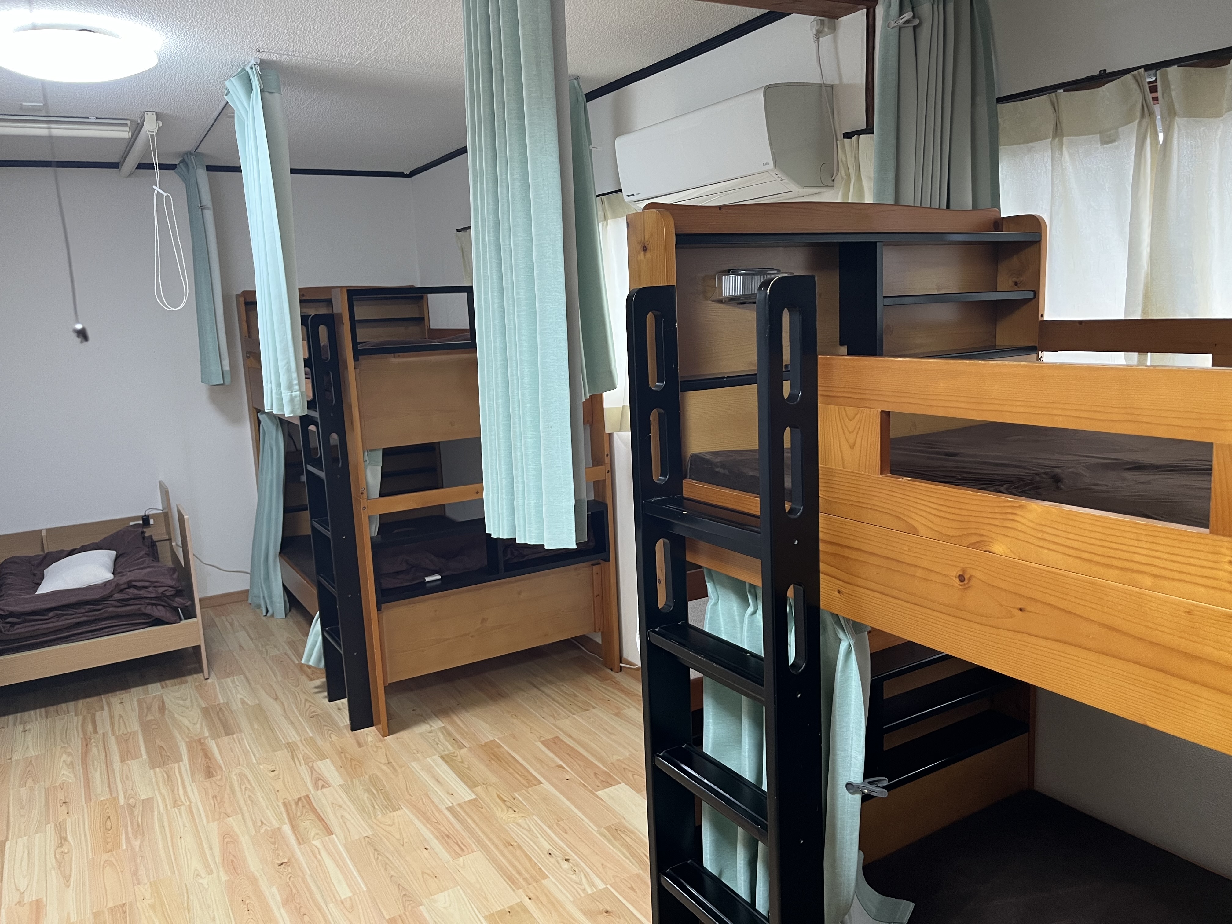 - 共用キッチン(電子レンジ・トースター・電気ポット・冷蔵庫・食器・調理器具付き)あり
