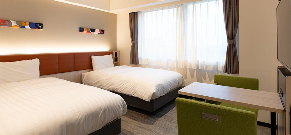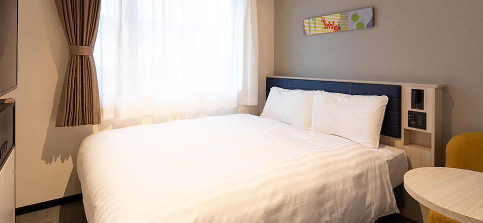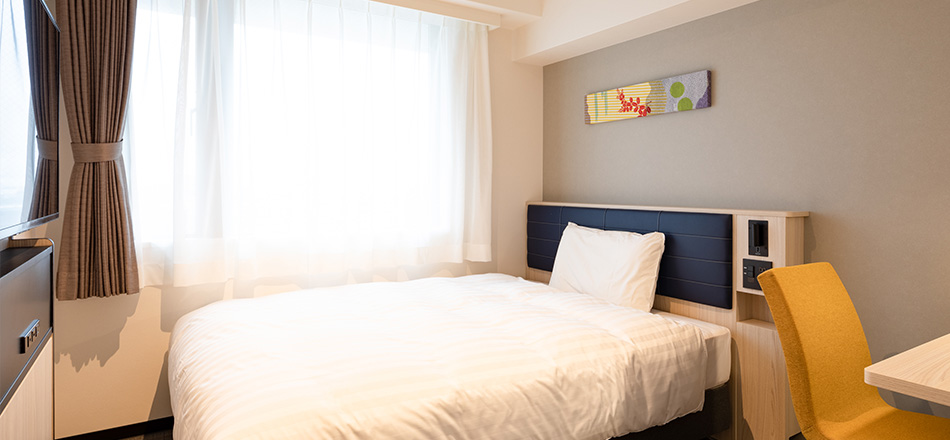 1名でのご利用はもちろん、ご家族やカップルのお客様にもおすすめです。ダブルサイズのベッドを設置した客室でゆったりとおくつろぎください。可動式のデスクで自由自在にレイアウトが可能。無料インターネット接続はビジネスでのご利用にも最適です。