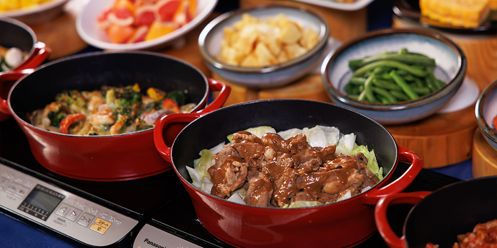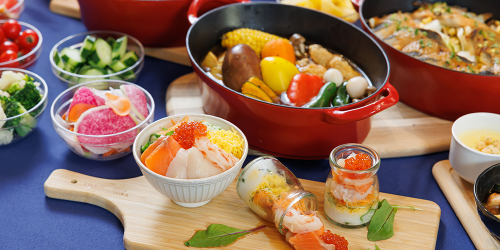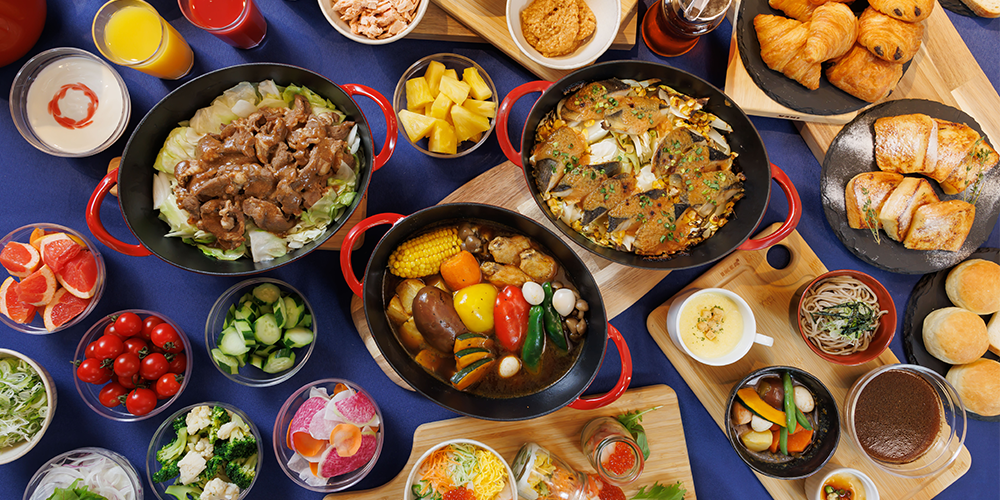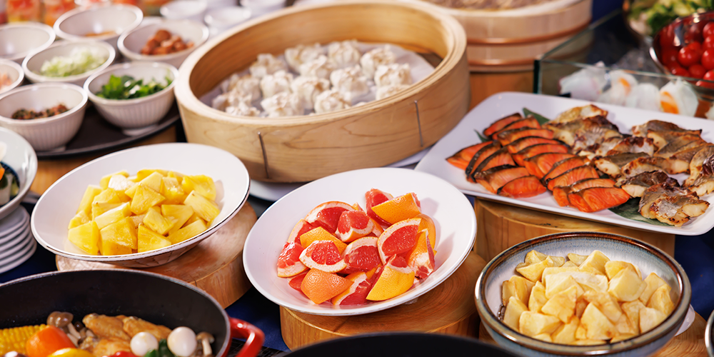 朝食ビュッフェで素敵な1日のスタートを。和食・洋食・サラダ、新鮮な道産の海鮮など地元ならではの料理をご用意。陽光が差し込む爽やかなフロアでバリエーション豊かな食事をお愉しみいただけます。