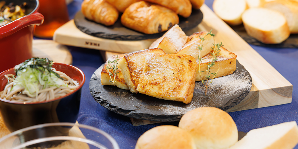 地元札幌のパン屋「おかめや」から仕入れた、しっとり食感が特徴の高級食パンを使用。優しい味が染み込むフレンチトーストをお楽しみください。