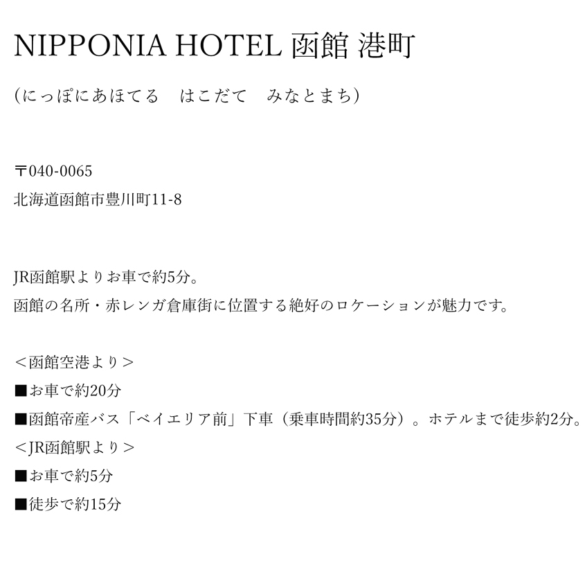 NIPPONIA HOTEL 函館 港町 アクセス